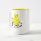 A cute yellow chick and a bicycle is a humourous bike gift design for cyclists at birthdays and holidays.
