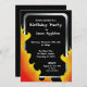 Biker Flames Silver Frame Birthday Invitations