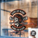 This Biker Skull Crossed Pistons Live To Ride Window Cling is for motorcycle shop windows and this is the maximum size of the image.
