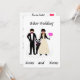 A couple in leathers, and wedding gear, with hearts, confetti and a bouquet. Add text for any wedding need, names to front and add details to back, venue date time other details and RSVP. Also says, Yes, it's a Biker Wedding. You can add, change, delete text and start over.