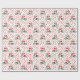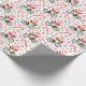 Cyclist Christmas holiday gift wrap or party decoration featuring cartoon Mrs. Claus cycling surrounded by holiday candy.