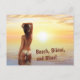 Bikini Girl Posing in the Sea at Sunset Postcard
