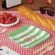 Bikinis And Martinis The Beach Club Green Stripe Paper Plate