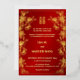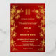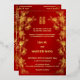 This traditional Chinese wedding invitation features a golden Asian frame, gold cherry blossoms and a golden artistic double happiness symbol on a shimmering red background. With a traditional Chinese text at the backside. This version has the parent's names in the headline.