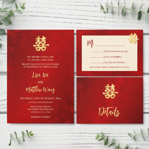 BILINGUAL Photo Red Gold Chinese Wedding
