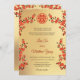 This version has a headline for the names of the PARENTS. Red cherry blossom branches and two butterflies on a gold background. Traditional Chinese wedding invitation with a red double happiness symbol. With a traditional Chinese text template at the backside.
