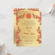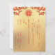 This version has a headline for the names of the PARENTS. Red oriental branches and two butterflies on a gold background. Traditional Chinese wedding invitation with a red double happiness symbol. With a traditional Chinese text template at the backside.