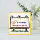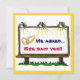 Cute and funny invitation is perfect for announcing an engagement and inviting guests to the engagement party! Design features a billboard with lights across the top. The message on the billboard reads "He asked...She said yes!" There is also a graphic of two shiny wedding rings on the billboard. The design is on a solid white background with yellow trim. The reverse side of the engagement party invitation is solid white with yellow trim. All of the text is fully customisable to suit your needs. These fun and casual invitations are perfect for informal engagement parties!