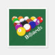 Billiard Balls Design Paper Napkins with customisable text and background colour.