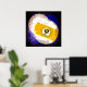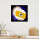 A grungy design of the cue ball behind a Billiards ball number 9.