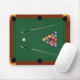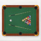 For pool sharks and billiard players, pool table graphic with racked balls and two pool sticks.