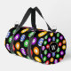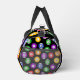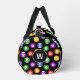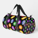 Colourful pool player duffel bag patterned pool balls on black. There's a monogram area at one end to add your own initial