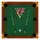 For pool sharks and billiard players, pool table graphic with racked balls and two pool sticks.