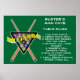 The perfect poster for your man-cave! Filliards rack with 2 cues crossing behind, word Billiards! in yellow text. House Rules. APA, TAP, UPA, BCA league rules, or your own. Billiard balls in 3D illustration. Set on a field of pool table green with white lettering. Perfect compliment to any game room! Visit our store for more of our Billiards and Pool Shark designs!