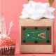 For pool sharks and billiard players, pool table graphic with racked balls and two pool sticks.