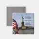 "Courage is contagious. When a brave man takes a stand, the spines of others are often stiffened.” Billy Graham quote on statue of liberty with American flag background magnet.