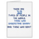 Binary joke - computer related. "There are 10 types of people in the world, those who understand binary, and those who don't"