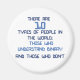 Binary joke - computer related. "There are 10 types of people in the world, those who understand binary, and those who don't"