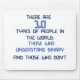 Binary joke - computer related. "There are 10 types of people in the world, those who understand binary, and those who don't"