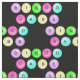 This design has bingo balls that spell out bingo babe printed on black fabric.