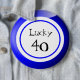 A fun blue button badge with custom text great for a bingo lovers birthday, personalise with an age and name or put your lucky number on it. Click on the image below to see more bingo themed products