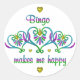 Share your love for bingo and how it makes you feel with this colourful design with hearts, flourishes, and the words - Bingo makes me happy.