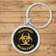 Biohazard yellow warning icon. Custom background colour. Two custom text fields on circle.