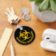Biohazard warning icon. Custom background colour. Custom text on both sides.