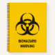 Biohazard warning icon on yellow background. Custom text. Seamless repeating background at back side.