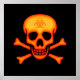 Black poster with orange biohazard skull and crossbones.