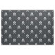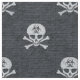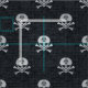 Biohazard symbol skull and crossbones with a grey brick wall background.