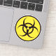 Sticker featuring a black biohazard symbol on a yellow circle with black outline