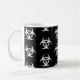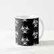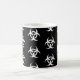 This bold and edgy coffee mug, adorned with a pattern of stark white biohazard symbols on a jet-black background, is the perfect blend of humour and danger—ideal for the person with a wicked sense of humour! It’s the ultimate mug for those who don’t take life too seriously and aren’t afraid to raise an eyebrow (or two) around the coffee table. With its bold design, this biohazard mug playfully warns, "Handle with care!"—even if the only poison it’s packing is your morning coffee.