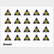 Dark blue triangle sticker with a bright yellow biohazard warning symbol.