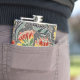 The flask itself is fine. It’s a cheap flask, obviously bought in bulk, however am prepared to overlook that. Given that it is a personalized item, I would have liked to have seen gift boxing instead of the generic packaging. Terrible printing, and/or quality. It’s a cheap, tacky vinyl. It is not cut straight and is also applied in a way that it is overhanging the bottom, causing the glue to catch on items and it will eventually roll and tear, damaging the wrap.