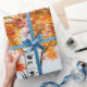 Birch trees, fall orange leaves wrapping paper. Perfect for weddings, birthday gift wrap. Autumn watercolor.
