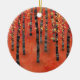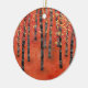 A modern landscape painting of a birch or aspen tree forest in rich tones of red, orange and yellow. Original art by Nic Squirrell.