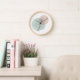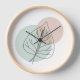 This boho chic wall clock features a black ink transparent birch leaf outline against sage and terra cotta circles on a white background. This minimalist clock will add a touch of nature to any modern bohemian style room.