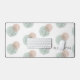 This minimalist botanical desk mat features a pattern of black ink transparent birch leaf outlines against sage green and terra cotta circles on a white background. This mat will add a touch of nature to any modern bohemian style home. Click "Personalise this Template" to easily change or remove the featured text.