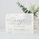 A soft and celebratory Chuppah wedding invitation RSVP featuring a foggy forest woodland background with white birch trees, white anemones, peonies, roses with silver dollar eucalyptus greenery, all is a soft tone on tone background. This RSVP offers a meal choice on the back and requests to be returned to you by mail.