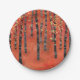 A modern landscape painting of a birch or aspen tree forest in the autumn in rich tones of red, orange and yellow.