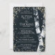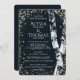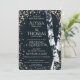 Evening sparkle lights twinkle around the rustic white birch trees on this elegant and rustic wedding invitation in midnight blue with golden glow twinkle lights.