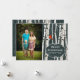 Stylish flat style Christmas greeting card, with a custom photograph, on the left side, and graphics of white barked birch trees, on the left. A single red cardinal perches on one of the tree branches and a vintage looking oval chalkboard style plaque, below, has white custom text ready to personalise. Add your own picture and text to this lovely holiday greeting. Matching products available.