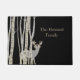 Inviting door mat done in black, with graphics of a semi transparent birch trees and deer. Tan custom text can be personalised, to read what you want.