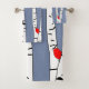 This towel set has a winter design of birch trees with red birds sitting amongst them. It also has a slot for an added filter if desired.