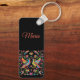 This is a Unique "One of a Kind" Bird And Flower Mexican Otomi Keychain! It Features a Mexican Otomi Print with Birds and Flowers in Colourful Bright Colours...on a Black Background!