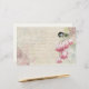 A vintage old-fashioned french postcard with faded handwriting and some faint roses and pastel pink flower blossoms. A little brown chickadee bird sits perched on the pink blossoming spring flowers. A charming shabby vintage design.