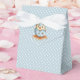 Simple pastel blue favour box with an illustration of a bird in a green egg. Perfect for baby shower favour gifts. Illustrated and designed by Patricia Alvarez.