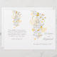 Cute bird couple line art graphic drawing of open bird cage hanging from a blossoming spring tree with hearts. Chic modern wedding design part of the bird cage romantic wedding stationary set. Pretty bright shades yellow and warm grey on white paper. Edit this wedding programme with your own name, dates, ceremony wording, wedding party attendants and thanks. An elegant program simply replace the sample text with your wedding information details and fold programs in half on delivery. Unique drawing and design by Sarah Trett.