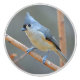 This ceramic knob features a tufted titmouse bird perched in a smokebush in winter. Copyright: Marjorie Tietjen